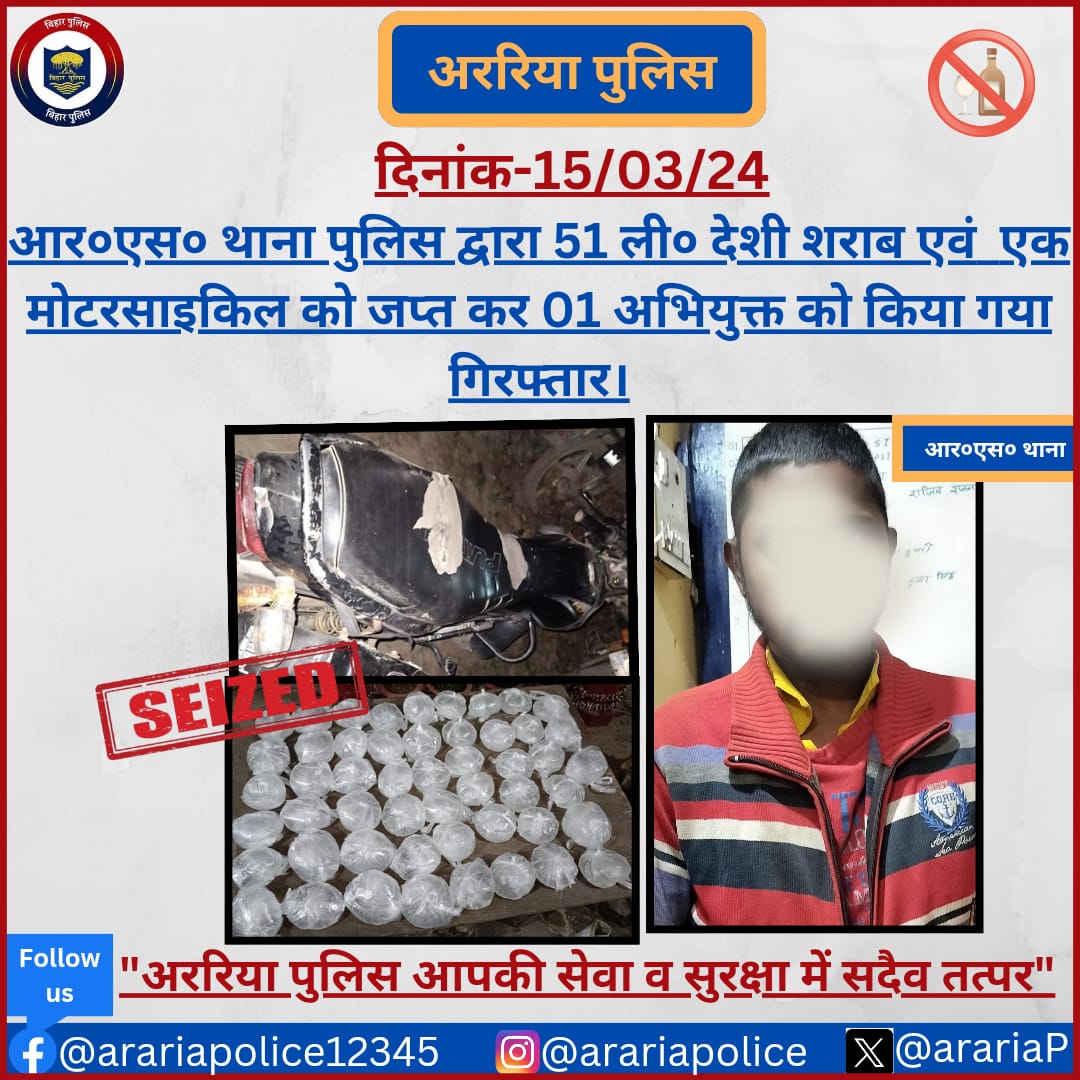 Read MorePost Views: 255 सारस न्यूज, अररिया। अररिया आरएस थाना पुलिस ने गुप्त सूचना के आधार पर 51 लीटर देशी शराब…