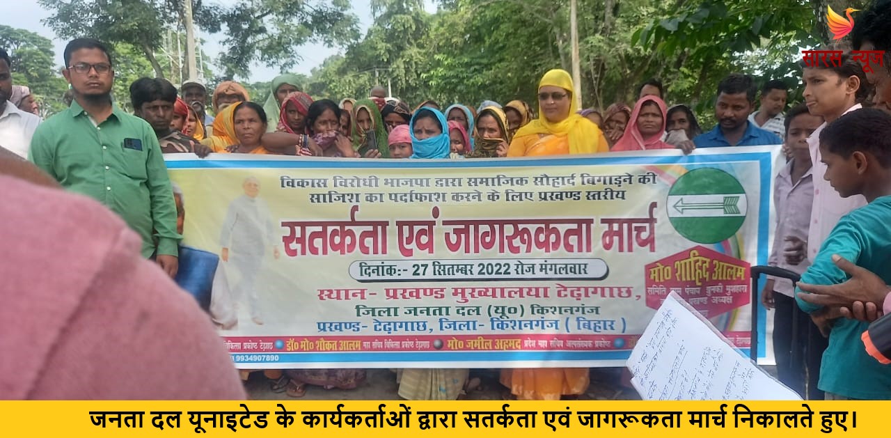 Post Views: 627 सारस न्यूज, किशनगंज। टेढ़ागाछ प्रखंड मुख्यालय में राज्य के आह्वान पर टेढ़ागाछ जनता दल यूनाइटेड द्वारा मंगलवार…