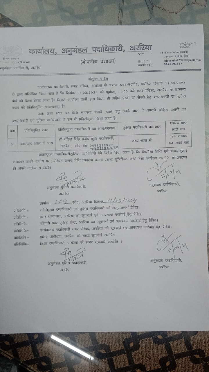 Post Views: 274 सारस न्यूज, अररिय। अररिया नगर परिषद कार्यालय। बीते 09 मार्च को अररिया नप में सामान्य बैठक आयोजित…