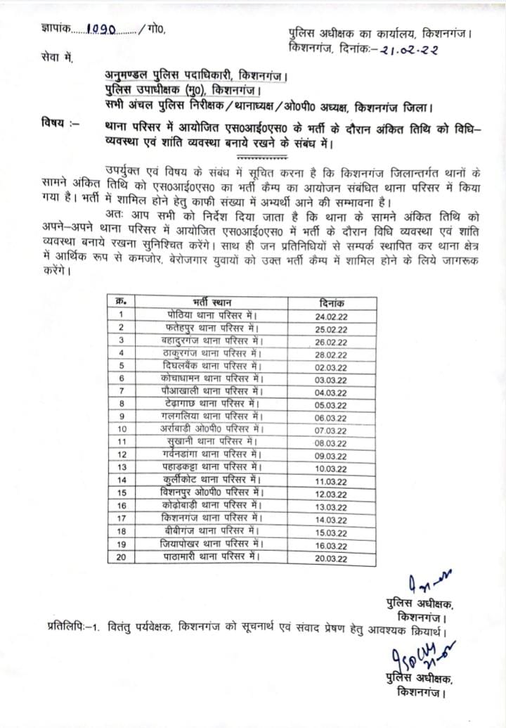 Post Views: 448 शशि कोशी रोक्का, सारस न्यूज़, ठाकुरगंज। देखिए किस थाने में किस दिन होगा भर्ती कैंप का आयोजन…