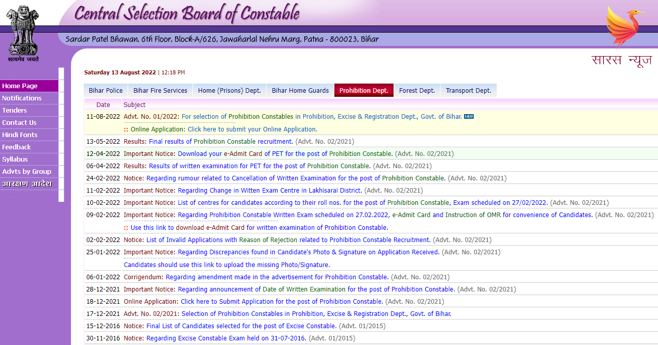 Post Views: 838 सारस न्यूज़ टीम, सारस न्यूज़। बिहार के केंद्रीय चयन पर्षद (सीएसबीसी) (सिपाही भर्ती) ने एक बार फिर…