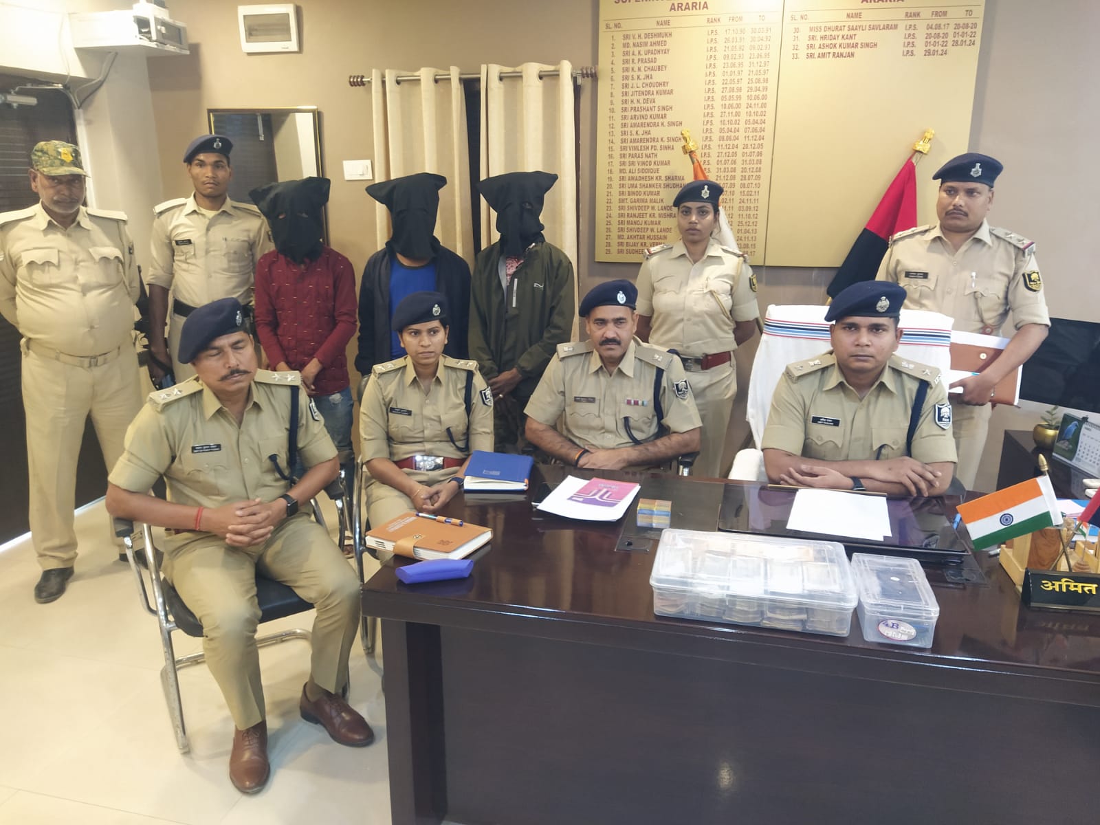 Post Views: 289 सारस न्यूज, अररिया। जानकारी देते एसपी अमित रंजन व मौजूद अन्य अधिकारी के साथ गिरफ्तार स्मैक कारोबारी।…