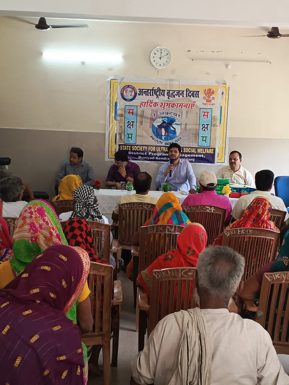 गुरुवार को बुनियाद केन्द्र किशनगंज में जिला सामाजिक सुरक्षा कोषांग किशनगंज सहायक निदेशक मो मिनहाजुद्दीन एवं बुनियाद केन्द्र, किशनगंज के प्रभारी जिला प्रबंधक की अध्यक्षता में अन्तर्राष्ट्रीय वृद्धजन दिवस के उपलक्ष्य में कार्यक्रम का आयोजन किया गया। कार्यक्रम में जिला बाल संरक्षण इकाई, किशनगंज के सहायक निदेशक रविशंकर तिवारी भी सम्मिलित हुए। कार्यक्रम में उपस्थित वृद्धजनों में से समाज में उत्कृष्ट कार्य करने वाले 30 वृद्धजनों को पदाधिकारियों द्वारा शॉल ओढ़ाकर सम्मानित किया गया। उक्त कार्यक्रम में वृद्धजनों के सेवार्थ बुनियाद केन्द्र की भूमिका, बिहार माता-पिता एवं वरिष्ठ नागरिकों का भरण-पोषण एवं कल्याण नियमावली, 2012 में प्रावधानित वृद्धजनों के अधिकारों के विषय पर विस्तृत चर्चा की गई। साथ ही, समाज कल्याण विभाग, बिहार सरकार की कल्याणकारी योजनाओं के बारे जानकारी प्रदान की गई। विभागीय निदेशानुसार अन्तर्राष्ट्रीय वृद्धजन दिवस पर पाँच सरकारी विद्यालयों के विद्यार्थियों के बीच निबंध, स्लोगन लेखन एवं चित्रकला प्रतियोगता का आयोजन किया गया था, जिसमें विद्यालयों में अध्ययनरत छात्र- छात्राओं के द्वारा बढ़चढ़ कर हिस्सा लिया गया था। सभी प्रतिभागियों में से प्रत्येक विधा में 03-03 विजेताओं (प्रथम, द्वितीय, तृतीय) को उक्त कार्यक्रम में पुरस्कृत भी किया गया।