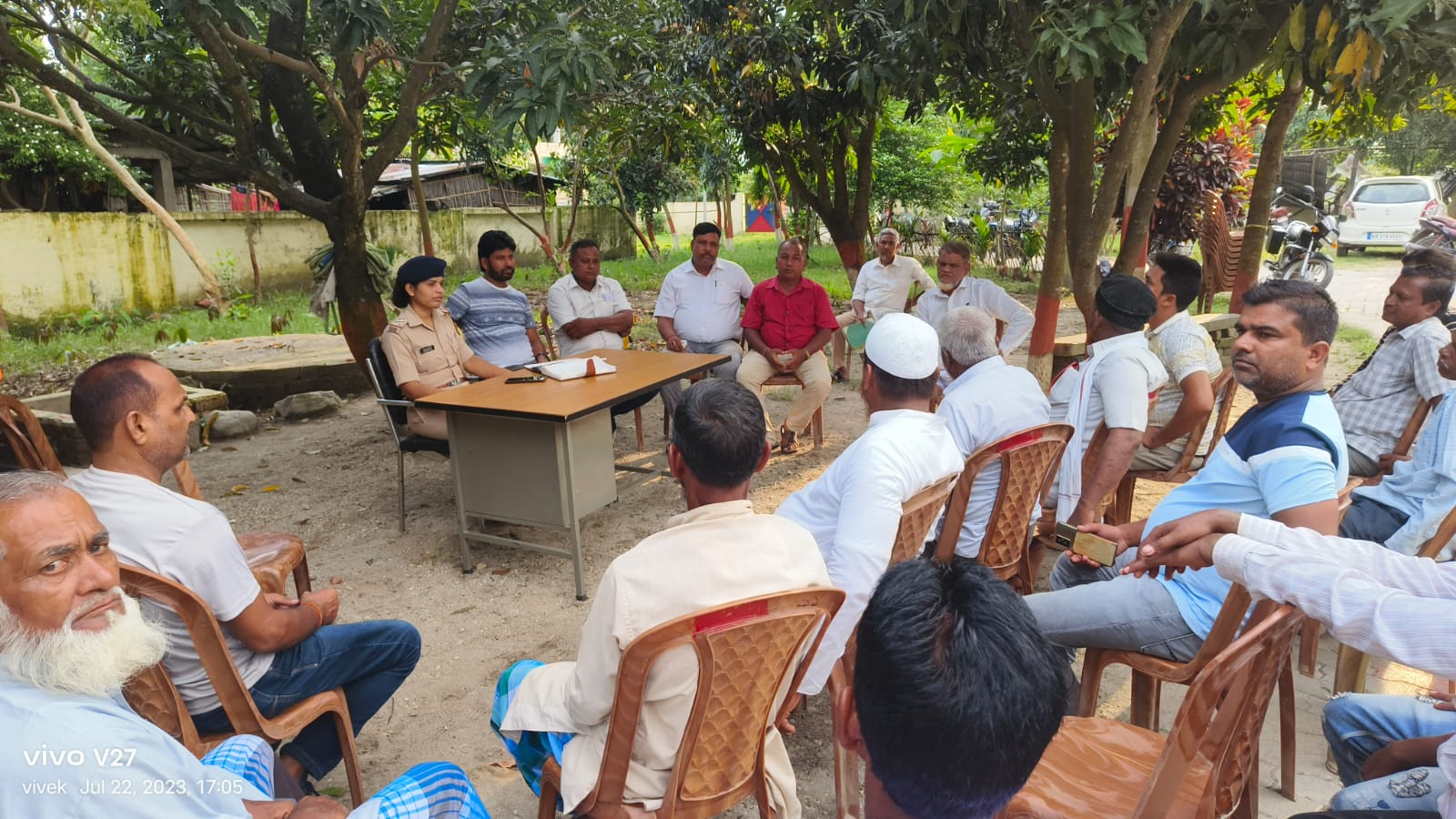 मुहर्रम पर्व को लेकर शनिवार को गलगलिया थाना परिसर में शांति समिति की बैठक हुई। इस मौके पर थानाध्यक्ष खुश्बू कुमारी ने पूर्व की तरह शांतिपूर्ण माहौल में यह पर्व मनाने की सभी से अपील की। थाना क्षेत्र के गलगलिया दरभंगिया टोला एवं डीमहाट गांव में मुहर्रम खेल व मेले का आयोजन किया जाता है। जिसमें संबंधित गतिविधि एवं समय के बारे में चर्चा की गई। आगामी 29 जुलाई को होनेवाले इस पर्व में आपसी भाईचारा बनाए रखने का संदेश देते हुए थानाध्यक्ष ने कहा कि जुलूस व मेले के दौरान पुलिस बल लेकर खुद मौके पर वह तैनात रहेंगे। खासकर असामाजिक तत्वों पर उनकी पैनी नजर रहेगी और पर्व में खलल डालने वालों को किसी भी सूरत में बक्शा नही जाएगा। चर्चा के क्रम में थानाध्यक्ष ने उपस्थित लोगों से कहा कि अफवाह फैलाने से दूर रहे तथा इस तरह की सूचना मिलते ही फौरन पुलिस को जानकारी दें। इस अवसर पर थानाध्यक्ष के साथ भातगाँव पंचायत मुखिया प्रतिनिधि बृजमोहन सिंह उर्फ मुन्ना सिंह, पंसस प्रतिनिधि मनोज गिरी, सरपंच प्रतिनिधि मो० आरिफ सहित कई स्थानीय लोग मौजूद थे।