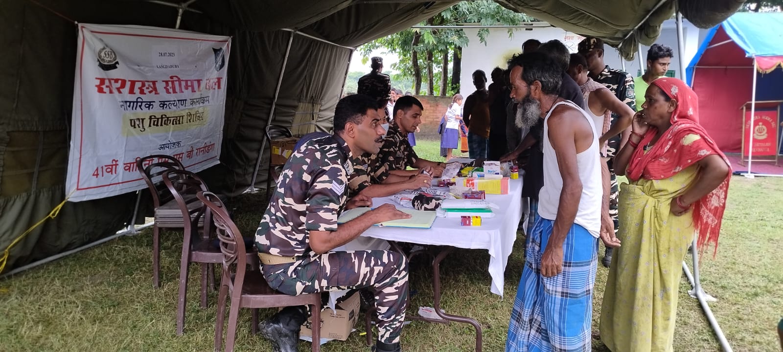 भारत-नेपाल सीमा पर तैनात एसएसबी की 41 वीं वाहिनी रानीडंगा द्वारा निशुल्क पशु चिकित्सा शिविर शुक्रवार को उत्क्रमित मध्य विद्यालय लंगराडूबा ( सीमा चौकी लंगराडूबा के कार्यक्षेत्र ) में आयोजित किया गया। शिविर में 127 पशुओं की चिकित्सा जांच की गई, जिसमें 71 गाय, 16 भैंस, 103, बकरी, 03 डॉग, 44 बछड़ा एवं 60 अन्य छोटे बड़े पशुओं का निशुल्क उपचार किया गया।