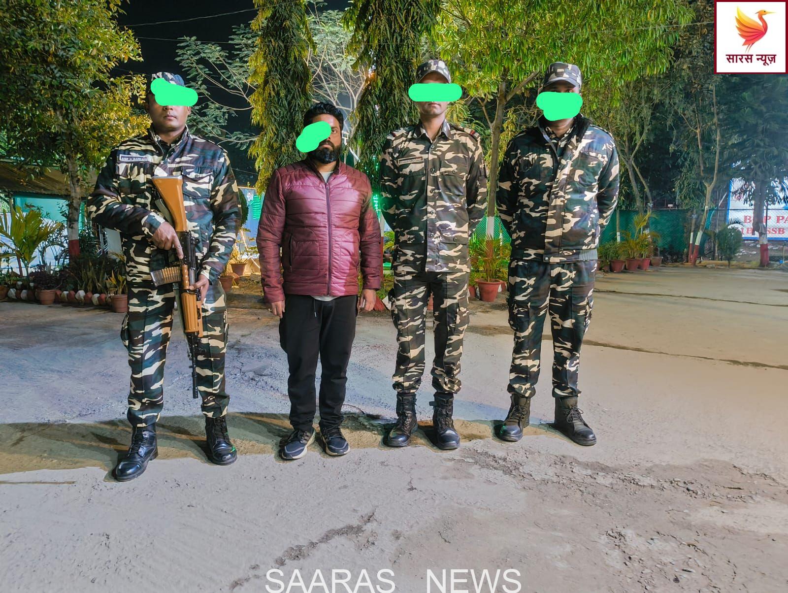 भारत -नेपाल सीमा पर तैनात एसएसबी 41 वीं वाहिनी के सी कंपनी पानीटंकी के जवानों ने भारत -नेपाल सीमा के पानीटंकी से फर्जी दस्तावेज बनाने के आरोप में दिल्ली के एक व्यक्ति को अपने हिरासत में लिया है। आरोपित का नाम नीरज कुमार (44) है। वह साउथ दिल्ली स्थित संगम बिहार इलाके के मंगल बाजार रोड ब्लाक – डी के गली नंबर तीन का निवासी है। एसएसबी सूत्रों से मिली जानकारी के अनुसार आरोपित के पास से उसके कई नाम के दस्तावेज पाए गए हैं। बाद में एसएसबी ने अपनी सारी कागजी कार्रवाई करने के बाद पकड़े आरोपित को खोरीबाड़ी थाना पुलिस के हवाले कर दिया। रविवार आरोपित को सिलीगुड़ी अदालत में पेश किया गया। पुलिस मामले की गहन छानबीन में जुट गई है।