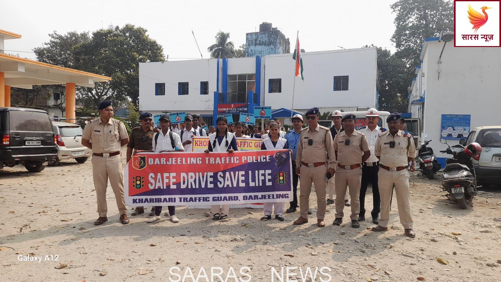 दार्जिलिंग जिला पुलिस के अधीन खोरीबाड़ी थाना और ट्रैफिक विभाग की ओर से सोमवार को खोरीबाड़ी जेआर हिंदी हाई स्कूल के स्कूली बच्चों को लेकर सेफ ड्राइव सेव लाइफ के तहत खोरीबाड़ी में जागरूकता रैली निकाली गयी। इस दौरान खोरीबाड़ी थाना प्रभारी मंतोष सरकार, ट्रैफिक विभाग के ओसी मनिंद्रनाथ बर्मन , धनंजय राय समेत अन्य मौजूद थे। ओसी मनिंद्रनाथ बर्मन ने कहा सेफ ड्राइव सेव लाइफ को लेकर जागरूकता संदेश दिया और दोपहिया वाहन चलाते समय सभी वाहन चालकों को हेलमेट जरूर पहनने की आपील की। ओसी मनिंद्रनाथ बर्मन ने कहा सड़क यातायात नियमों का पालन करना हम सबकी नैतिक जिम्मेदारी है। हमारा उद्देश्य है हर व्यक्ति ट्रैफिक नियमों का पालन करें जिससे ट्रैफिक हादसों में कमी आए। उन्होंने कहा ट्रैफिक पुलिस की ओर से हेलमेट पहने चालकों को समय -समय पर सम्मानित भी किया जाता है। दूसरे लोग भी ट्रैफिक नियमों के प्रति जागरूक हों सकें।थाना प्रभारी मंतोष सरकार ने कहा सेफ ड्राइव सेव लाइफ के तहत ट्रैफिक पुलिस की विभिन्न टीमें अपने -अपने जगहों पर आए दिन लोगों को जागरूक कर रही है। लोगों को सड़क सुरक्षा नियमों के प्रति जागरूक करने के उद्देश्य से लगातार ट्रैफिक पुलिस की ओर से रैली का आयोजन किया जाता है। इस दिन भी जागरूकता रैली के माध्यम से रिक्शा, आटो रिक्शा, टैक्सी व बस चालकों सहित आम जनता को ट्रैफिक रूल्स और रेगुलेशन से अवगत करवाया कराया गया।