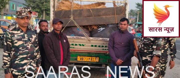 एसएसबी सूत्रों से मिली जानकारी के अनुसार, गुप्त सूचना के आधार पर जवानों ने नक्सलबाड़ी थाना क्षेत्र के सातभइया इलाके में डबल्यूबी 73 बी 8270 नंबर की एक पिकअप वैन को रोककर तलाशी ली। तलाशी के दौरान पिकअप वैन से चार भैंस बरामद हुए। इसके बाद पुलिस ने भैंसों को जब्त करते हुए मौके से तीनों आरोपितों को गिरफ्तार कर लिया।