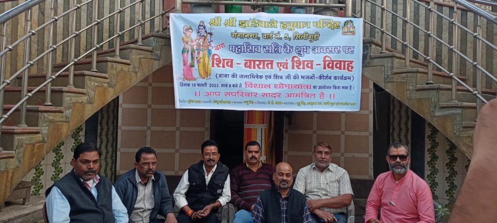 सिलीगुड़ी: महाशिवरात्रि के पर्व को लेकर शहर के विभिन्न शिव मंदिरों को सजाने संवारने का काम जोरों पर है। महादेव को मनाने के लिए तैयारियां जोरों शोरों चल रही है। हर साल शिवरात्रि के मौके पर निकाले जाने वाली शिव बारात को लेकर भी धार्मिक मंडली के सदस्य दिन-रात जुटे हुए हैं। वही 18 फरवरी महाशिवरात्रि पर्व पर श्री श्री झण्डेवाले हनुमान मंदिर गंगानगर से भव्य शिव बारात निकाली जायेगी। जिसमें शिव पार्वती , बानरों, भूत पिशाच व अघुरियों की झांकी निकाली जायेगी। साथ ही शिव विवाह भी कराया जाएगा।