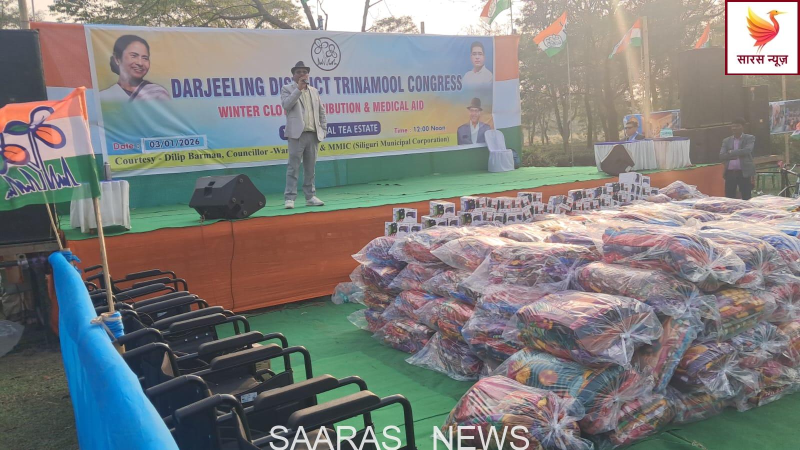 नक्सलबाड़ी: सिलीगुड़ी महकमा अंतर्गत नक्सलबाड़ी स्थित अटल फुटबॉल मैदान में दार्जिलिंग जिला तृणमूल कांग्रेस की ओर से सिलीगुड़ी नगर निगम के एमएमआईसी एवं वार्ड संख्या 46 के पार्षद दिलीप बर्मन के नेतृत्व में शनिवार को जरूरतमंद लोगों के बीच 3000 ब्लैंकेट का वितरण किया गया।
