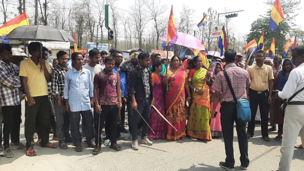 सोमवार को आदिवासी विकास परिषद ने पानीटंकी में विरोध प्रदर्शन किया। पानीटंकी के सीमा शुल्क कार्यालय से एक रैली निकाली गई। यह रैली विभिन्न इलाकों का परिक्रमा कर खत्म हुआ। मालूम हो कि 25 मार्च को तीन युवक और एक महिला ने एक घर में जाकर एक महिला के साथ मारपीट की। इसके बाद 26 तारीख को चार लोग तपन मंडल, आशापूर्णा मंडल, निकुंज मंडल, बिमली मंडल के नाम से खोरीबाड़ी थाने में लिखित शिकायत दर्ज करायी गयी। ये चारों अंधारू जोत इलाके के रहने वाले हैं। अखिल भारतीय आदिवासी समाज के अध्यक्ष राधा मुंडा ने कहा अगर इन्हें जल्द गिरफ्तार नहीं किया गया तो, तराई डुआर्स में एक बड़ा आंदोलन किया जायेगा। जरूरी पड़ा तो खोरीबाड़ी थाना का भी घेराव किया जायेगा।